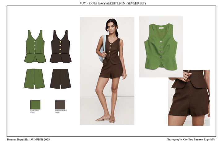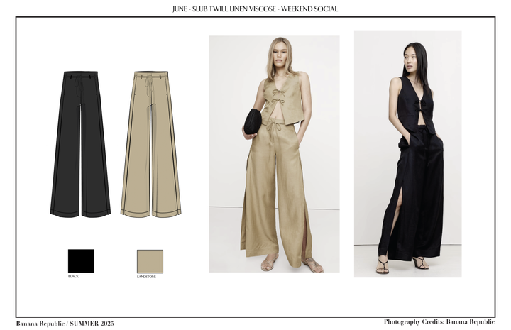 The deck below showcases flat sketches along side the finished garments, designed by April Onishenko.